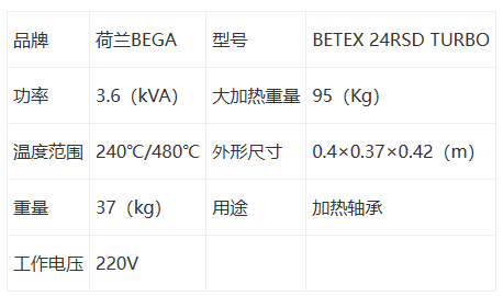 荷兰BEGA 24RSD TURBO轴承加热器技术参数: