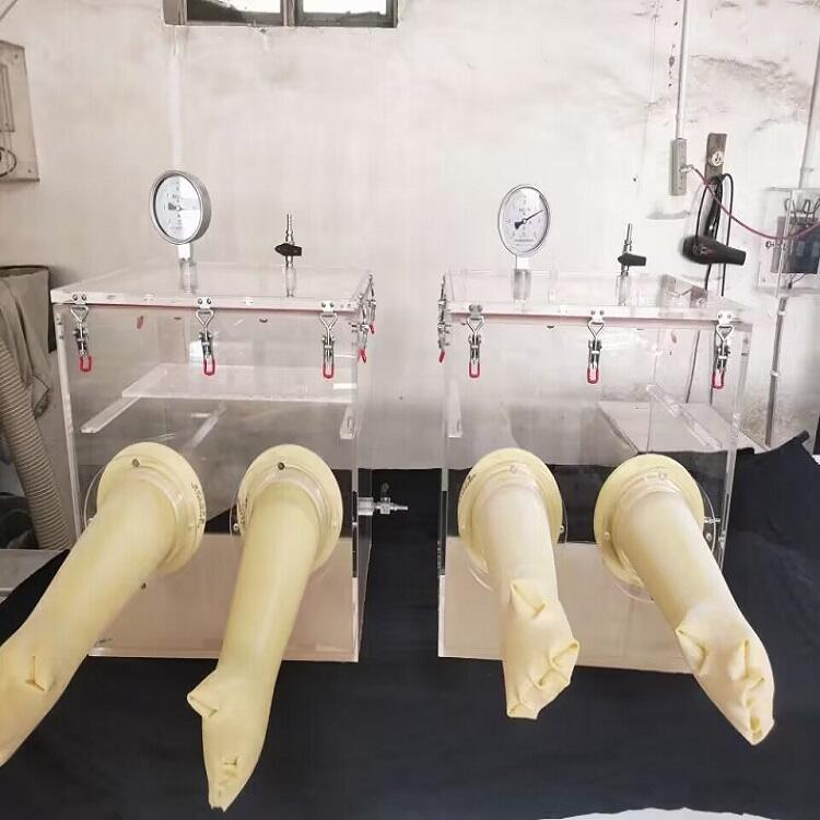 气体密封的手套箱:箱体材质:有机玻璃这种箱体的特点就是能够实现箱体的密封,箱体的密封要求箱体的壁厚至少要10毫米或者10毫米以上才能够达到箱体的密封,较小的箱体还可以使用较薄壁厚的板材,这样可以是箱体的整体重量降低,但是为了达到箱体的密封环境,就需要对箱体的部分区域进行加固,门和门]框的地方就要使用10毫米或者15毫米的壁厚来达到箱体的内部的气体密封性能。