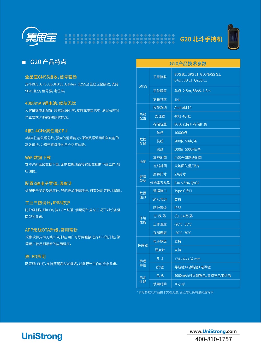 G2系列北斗手持机搭载定位模组,可实现快速精准定位,2.8寸高亮显示大屏,4000mAh大容量锂电池,满足一天高强度作业,定制功能软件支持OTA升级,常用常新。