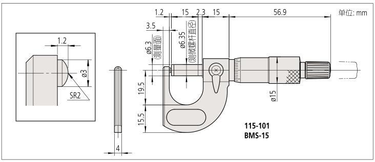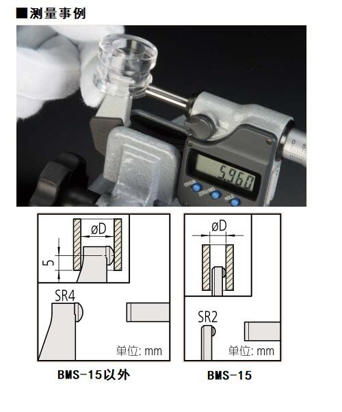 ● 测量面为硬质合金。 ( BMS-15:  只有测微螺杆的测量面是硬质合金 ) 。