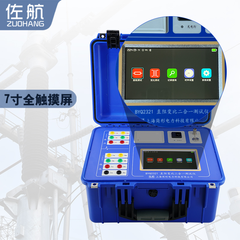 佐航 BYQ2321 直阻变比二合一测试仪,内置大容量锂电池,我们仅需要一套设备,可以完成两个项目的测试,不需要频繁的拆接测试线,7寸全触屏操作,人机友好,操作方便。