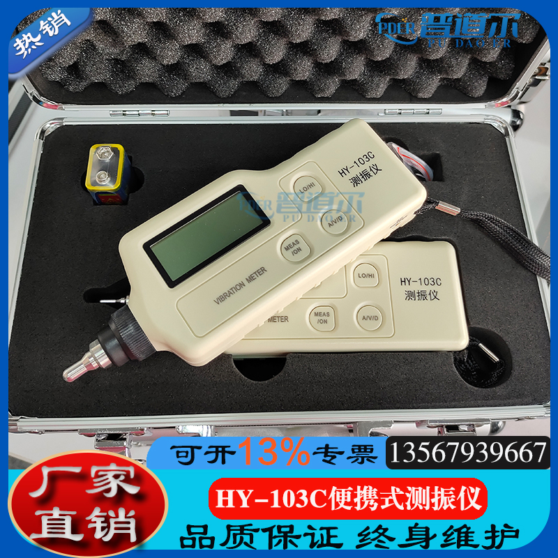 普通型测振仪配备长、短探头各一个,说明书、合格证、保修卡、适合各种不同场所测量。
