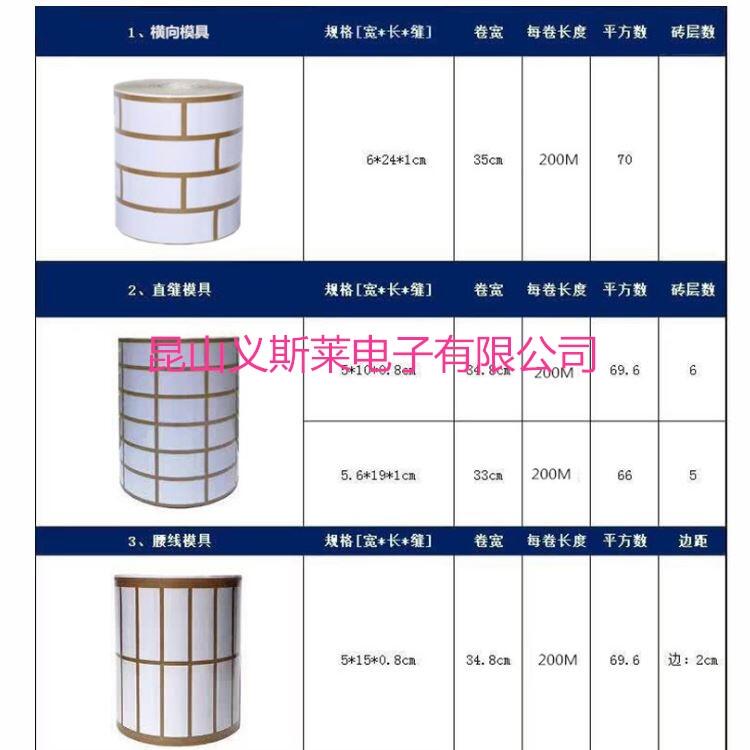 规格为:1220MM*55M*0.17MMT,具有良好尺寸稳定性、热稳定性、化学稳定性,耐湿性、初粘性和持粘性好,易模切加工,对塑胶、橡胶、铭牌均有良好的粘性;能适用于更宽的温度范围和恶劣环境;离型纸为聚合物涂层防湿牛皮纸,在高湿度条件下也不会发生皱折;长期耐温93℃,短期耐温可达149℃