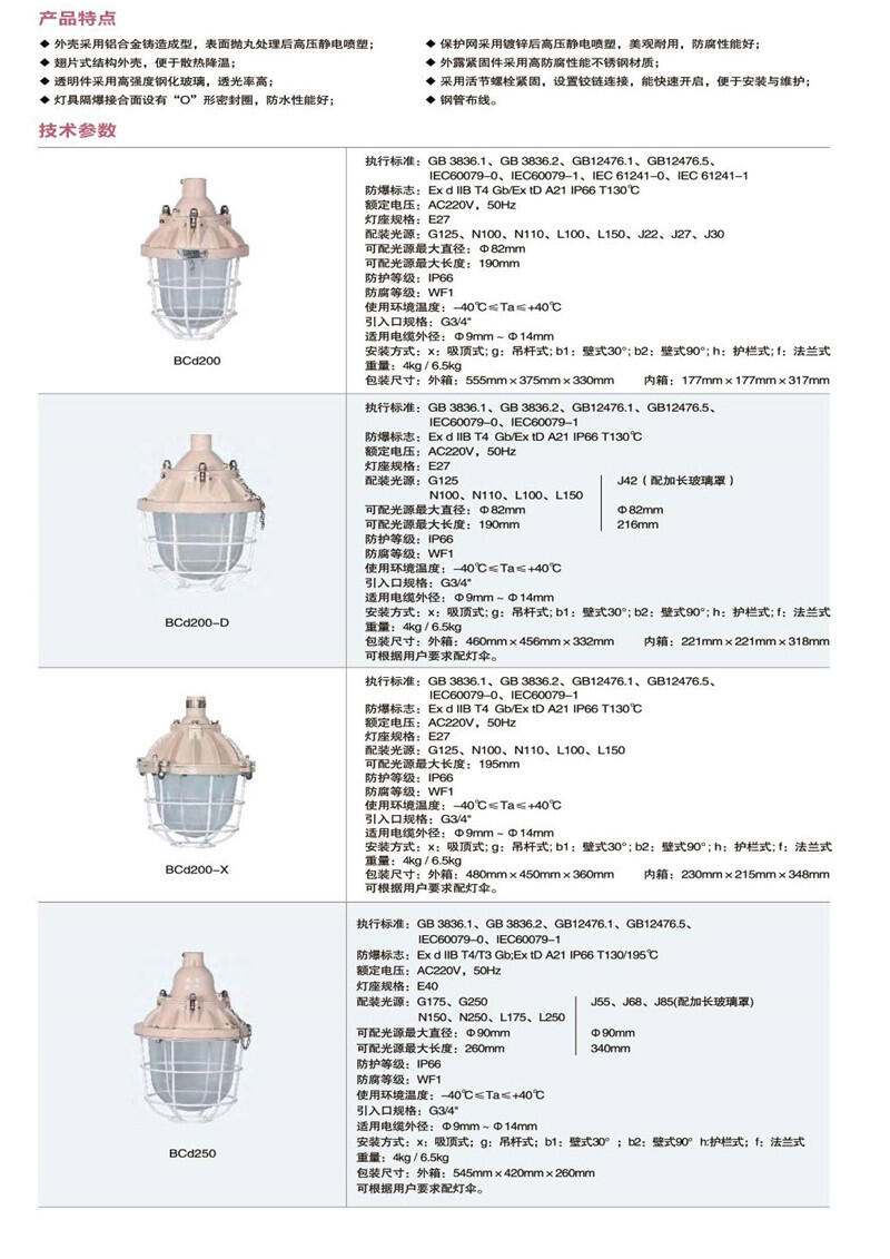 ◆本系列灯具共有四种型号:BCd200、BCd200-D、BCd200-X、BCd250: