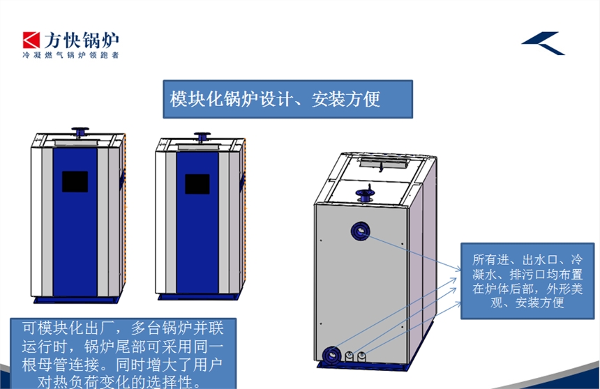 ? 模块化设计、占地面积和体积小,能够与其它铸铝锅炉相媲美。