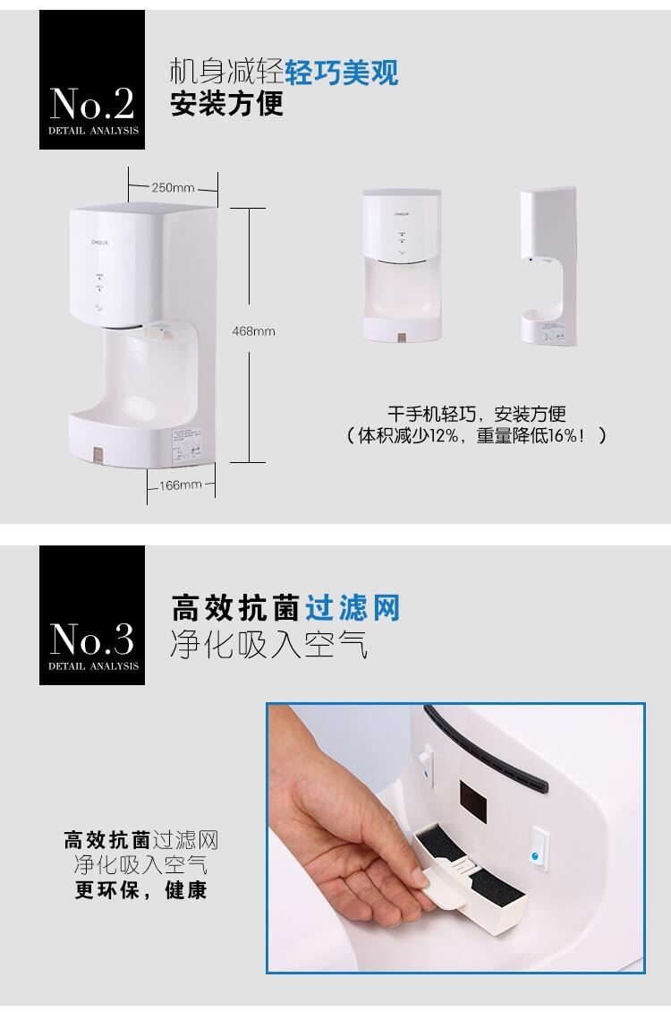 DH2630T迪奥塑料带接液盘喷气式干手器10-15S烘手器