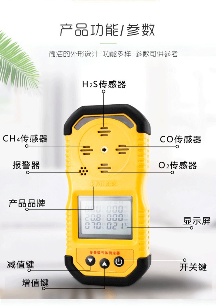测量范围 | 甲烷,氧气,一氧化碳,硫化氢 | ||