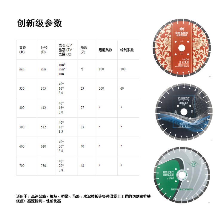 切克多锯片创新级直径350400500600700锋利切路片混凝土切割片