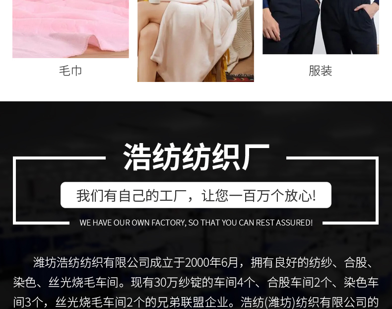 潍坊浩纺纺织有限公司 智能客服智能客服在线解答,若涉及资金打款事宜,务必与厂家进行电话确认。
