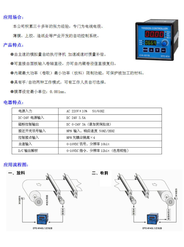产品型号 | DTC-614膜厚设定张力控制器放卷张力控制系 | ||