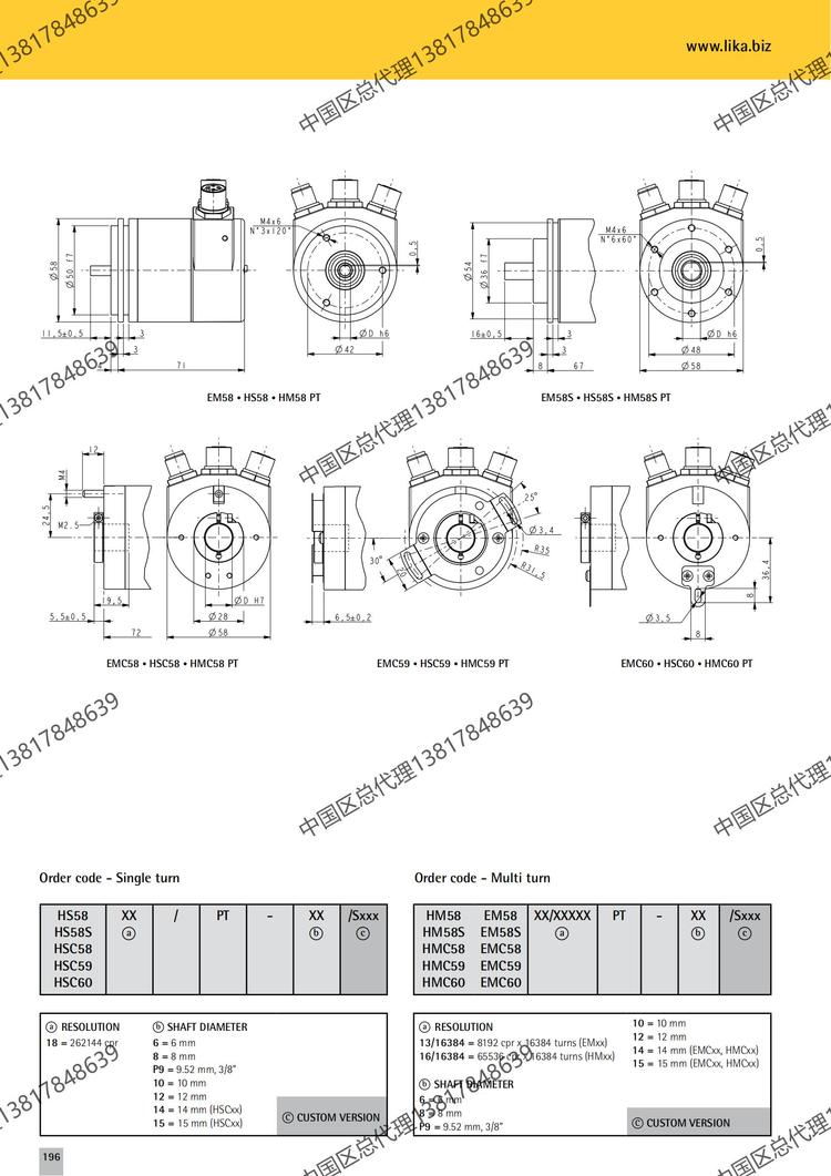 意大利LIKA绝对值编码器EM58S13/16384PT-104现货 品牌 | Lika | ||