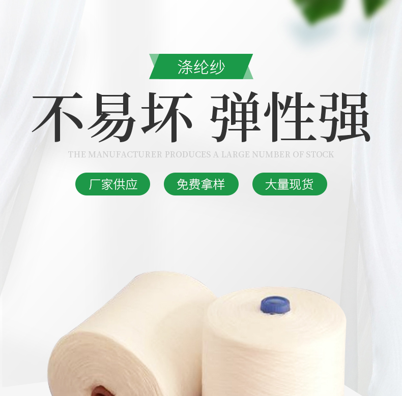 涤纶缝纫线40支涡流纺再生涤纶纱中空纱阻燃竹节纱20支