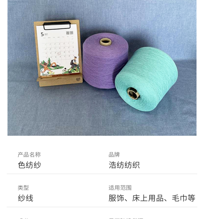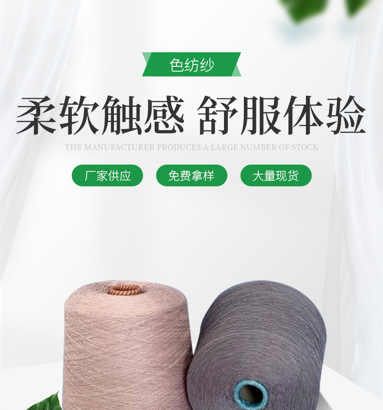 涡流纺纯涤纱(中灰色)40支竹棉色纺纱32支棉莫麻灰纱