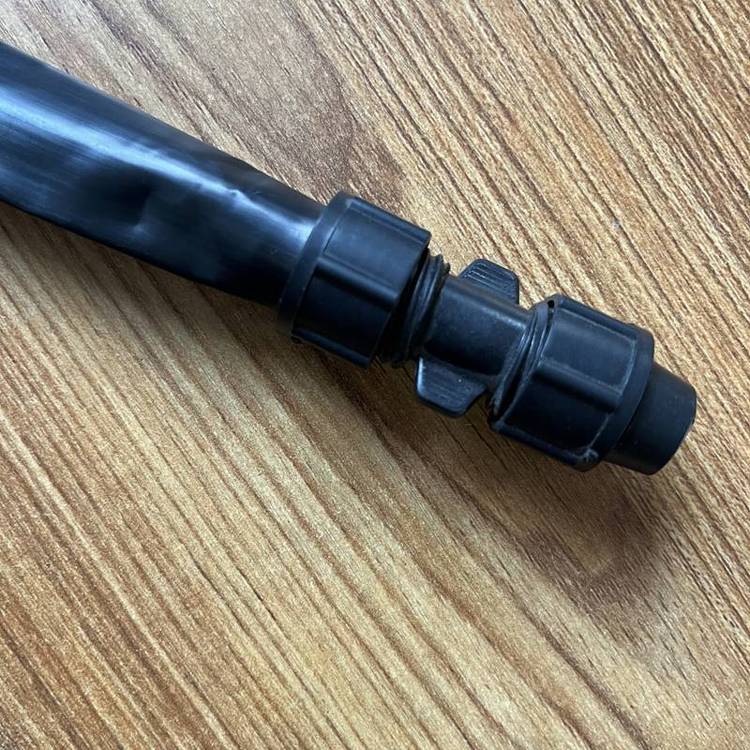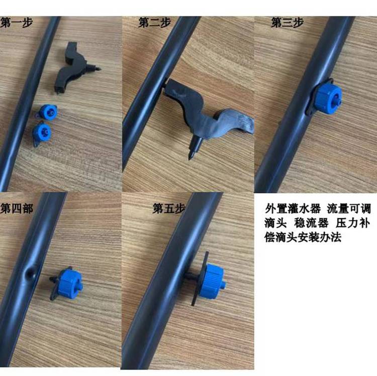 2.首端与水泵输出端相接(用金属卡固紧),此处可使用快速接头,也可使用与微喷带直径相应的金属管或PVC塑料管,并连接一个阀门;