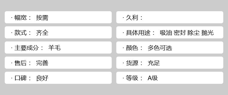 具体用途吸油 密封 除尘 抛光