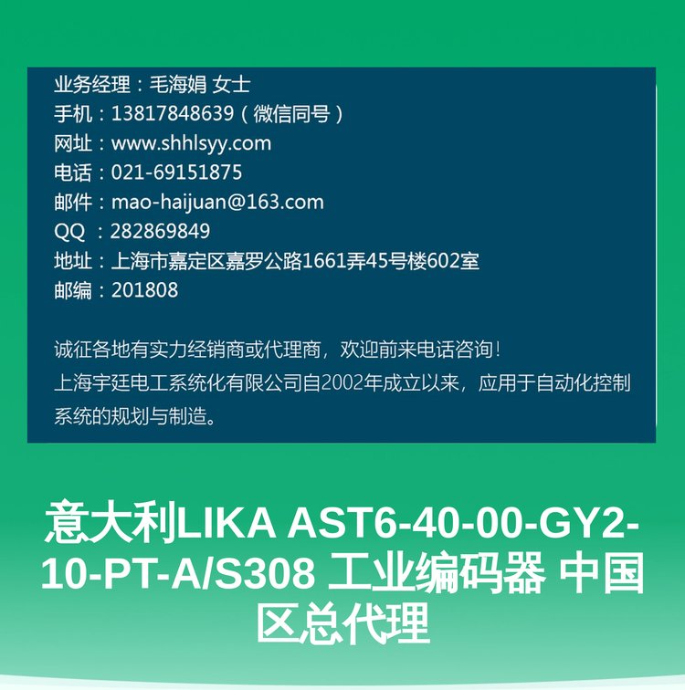 意大利LIKA AST6-40-00-GY2-10-PT-A/S308 工业编码器 中国区总代理 品牌 | Lika | ||