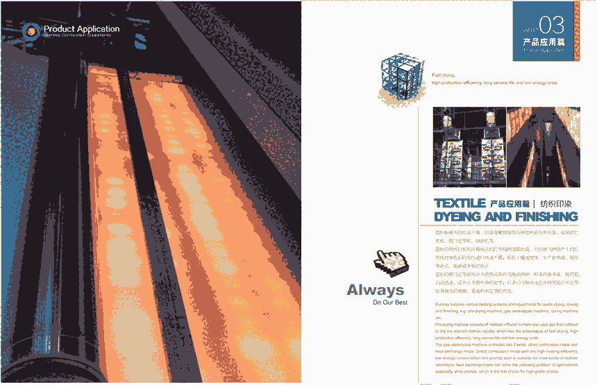 我司广州市蓝炬燃烧设备有限公司是专业从事天然气红外线加加热设备,燃气红外线干燥设备及相关产品研发和生产的高科技企业,其主要人员具有10多年热能设备的研发和管理经验,并拥有或已申报多项实用新型及发明专利,特别在燃气红外线加热干燥领域,走在国内前沿,处于世界先进水平。涉及领域有皮革干燥,纺织染色红外线预烘,无纺布天然气直燃加热式烘缸加热,沥青路面热再生修补加热,纸张涂布燃气红外线干燥,金属燃气红外线预热消氢等。