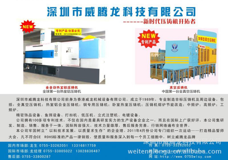威腾龙科技有限公司:合金设备与材料的领航者!压铸行业的开拓者!本公司长期对外加工【锌合金产品】【铅锡合金产品】【铝合金产品】【铜合金产品】【pvc鱼饵产品】及对外模具加工,提供一条龙服务。