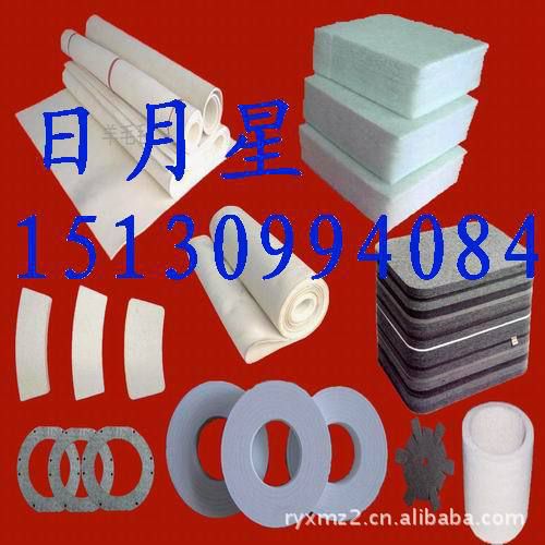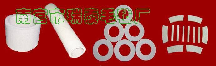 毛毡制品系列;毛毡垫,毛毡圈,毛毡条,毛毡环,毛毡块,毛毡异形制品,毛毡油封配件,毛毡滚筒,砂光机毛毡带,高温呢毯带,热转印机毛毯,羊毛毡刹车片,化纤毡刹车片,毛毡鼓槌制品,毛毡传送带,输送带,导布带,拖布带,烫平带,以及各种异形毛毡制品(可根据用户图纸和要求生产加工)。