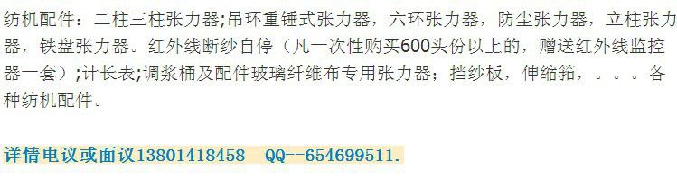 我公司生产销售各种整经机、系列张力器,调浆桶、筒子架、红外线装置、张力器。。。等详情电议或面议。