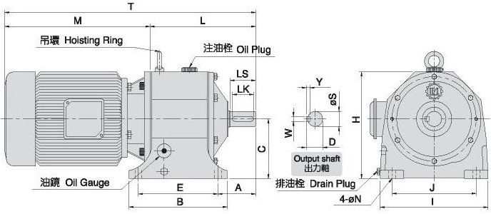 利明减速机(三段式)尺寸表dimension of 3-stage (m/m)