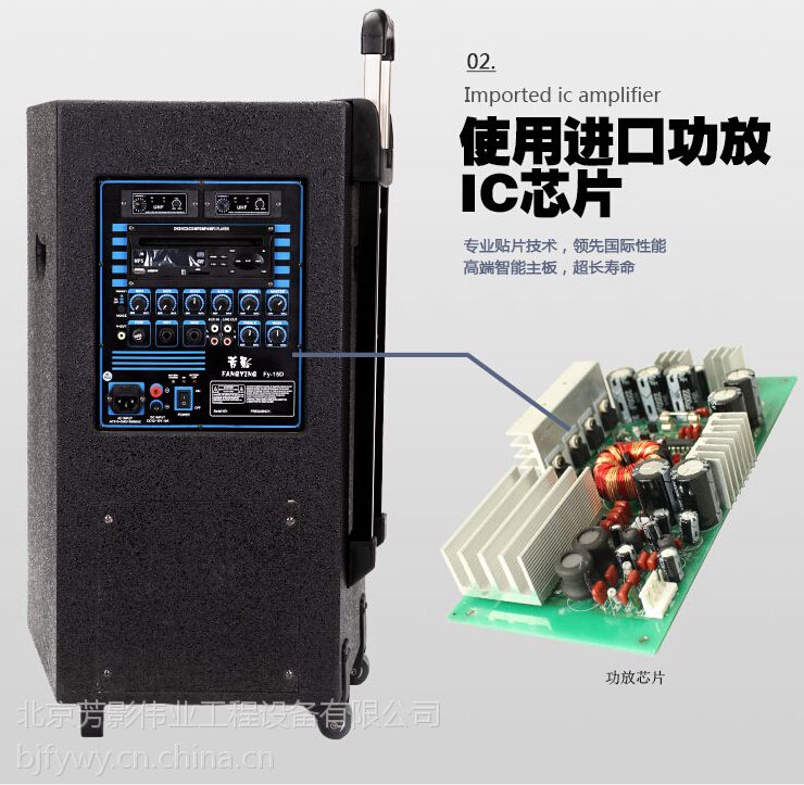 fy-15d是芳影定制的一款多功能大功率高音量音响,这款户外拉杆移动音箱适用大场地、多人数使用。产品搭载15寸低音喇叭1只,号角高音喇叭1只,2路3寸低音导相孔