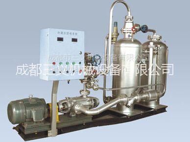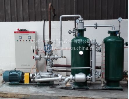 蒸汽间接加热生产线系统中,随着蒸汽在加热设备内释放出汽化潜热,大量的高温凝结水随之产生,其温度一般在100℃以上,热焓占原蒸汽热焓的25%左右,具有很高的利用价值,水质近于蒸馏水,几乎没有溶解氧和二氧化碳等气体,是良好的锅炉补给水。所以,充分回收并利用这些凝结水既可以节约锅炉燃料和软化水,又可以大大降低锅炉的运行成本,提高锅炉使用寿命,改善环境条件。生产凝结水闭式回收装置,运用智能化多功能全自动控制系统,是当前先进的凝结水回收产品。该产品具有自动启闭、自动声光报警、压力自动调节、双泵自动切换运行等特点。为保证离心泵的正常工作,延长使用寿命,改善使用条件,应用了多项先进的汽蚀消除技术,有效地解决了离心泵的汽蚀问题。