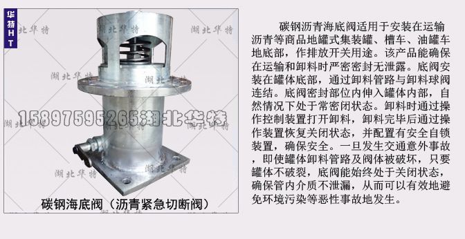 浓硫酸紧急切断阀又可称为铸铁海底阀,安装在罐车底部,主密封处于罐体内部,当管道或阀门发生意外断裂破损,可使罐体仍保持密封,避免罐内液体泄漏,提高运输的安全性和可靠性。主体采用碳钢、不锈钢、铝合金,结构简单,经久耐用、维修方便。