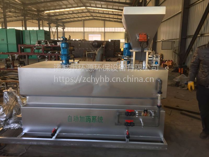 pam加药装置原理——双泵单控组合式自动加药装置本装置 由一个计量箱、二台加药计量泵(互为备用),一套交流变频式自动加药控制系统、连接管路、阀门、底座等组成,见图1。计量箱的容积为1m'(用户有特殊要求另议),是否带搅器、远传液位计、液位高低限报警以及罐体材质选择由用户或设计部门提出,也可由用户直接向我单位咨询。罐体材质有钢、不锈钢、衬胶罐体,用于不同的药液。用户订货时,必须说明计量泵如下参数:流量(1/h),泵出口压力(mpa),泵流路材质(或者输送药剂的名称、浓度)。 pam加药装置原理——加药装置的使用 用户按照投加料溶液的比例来配置药剂,通过计量泵来精确投加 连接加药装置,然后检查每个法兰接口,加以固紧,以免流体泄漏。 2、连接计量泵的电源: 打开电控柜接线盒,将符合计量泵电动机要求的三相四线制电源线接入对应的接线端子。 3、通过控制操作开关瞬时启动搅拌机,观察电动机转向,若转向正确,固定好接线盒。若转向不正确,调整相序后再固定好接线盒。 4、关闭排污阀。将药液容器加满药液。 5、开启加药系统的阀门,启动计量泵。 6、加药装置配置两台计量泵,其中一台为加药用泵,另一台为备用泵。 pam加药装置原理——特别注意: 加药时,打开启动计量泵(应确保此计量泵及相关管路畅通完好)对应的一路管路,关闭另一路管路。 装置顶部设有溢流管,防止药液的溢流,通过排污管路流出。 在加药计量泵的入口处设有管式过滤器,防止大颗粒固体物质进入计量泵,将计量泵损坏。