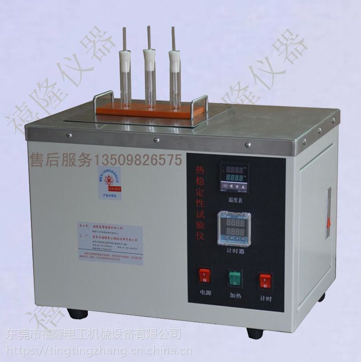 热稳定性试验机适用于电线、电缆行业软聚氯乙稀、塑料绝缘护套200℃±0.5℃热稳定试验。其结构和性能均满足gb/t2951-32:2008《电缆和光缆绝缘和护套材料通用试验方法?第32部分第9条款:绝缘和护套的热稳定性试验》,iec60811-3-2,gb/t8815-2008和qb/t3804-99《电线电缆用软聚氯乙烯塑料》标准要求。