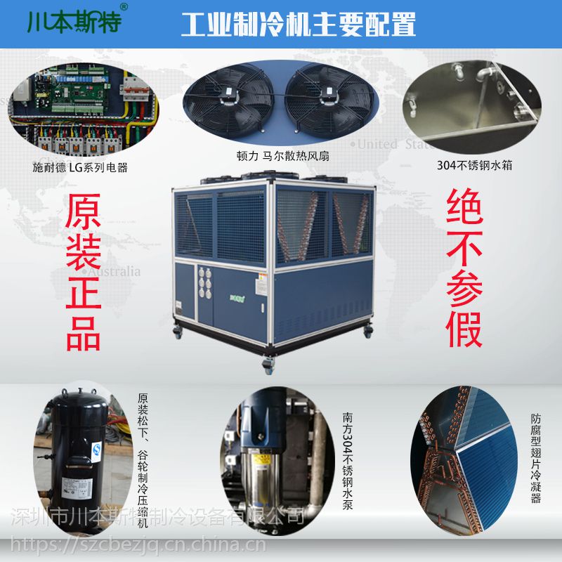1、高品质压缩机作为工业冷水机组的心脏(产地欧美日全新原装压缩机,内置安全保掮,低噪音,省电耐用)。