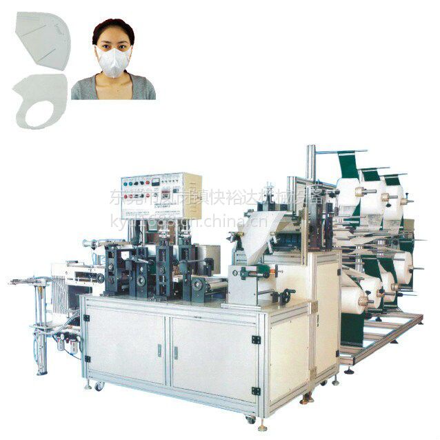 该机台是一台全自动制造过滤型、c型、蝶型、弹性、防尘口罩的全新自动化设备,此机台是一台能从原料入料到生产出成品不需要其他辅助设备一次性完成成品口罩的自动化设备。