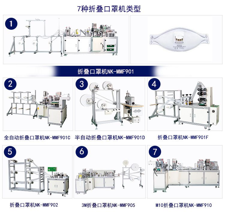 折叠口罩机,亦称c型口罩机、碟型口罩机,是用于折叠口罩本体生产的全自动机器,使用超声波技术,将3~5层pp无纺布、活性炭以及过滤材料粘合,并剪切出折叠口罩本体, 可加工3m 9001、9002等口罩本体。根据所使用的原材料不同,所生产的口罩可以达到如ffp1、ffp2、 n95等不同的标准。再使用耳带点焊机把耳带焊接到本体上,即可完成整个折叠口罩的制作。耳带材料为弹性不织布,使配戴者耳部舒适,无压力,口罩滤布层过