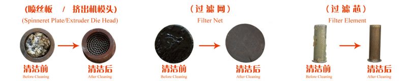 真空清洗炉用于清洗化纤行业涤纶、丙纶、无纺布等行业的普通喷丝板、异形喷丝板、细旦丝板、组件壳体,也可用于清洗过滤芯。它利用化纤高分子聚合物在隔绝空气的真空状态和500℃左右的高温下裂解的原理制作而成。具有对环境污染小,清洗的喷丝板板面干净,丝孔流畅,并可以延长喷丝板的使用寿命以及工作时间短、节能、操作简便、清洗效果好、自动化程度高等优点。是取代三甘醇清洗炉、盐浴炉的更新换代产品。真空清洗炉亦适用于塑料行业模头、滤芯的清洗。
