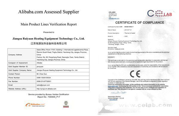 江苏瑞源生产的产品已通过iso9001:2008、iso14001:2004、ce、bv和中国制造网的sgs等等一系列认证。上述只是部分证书。