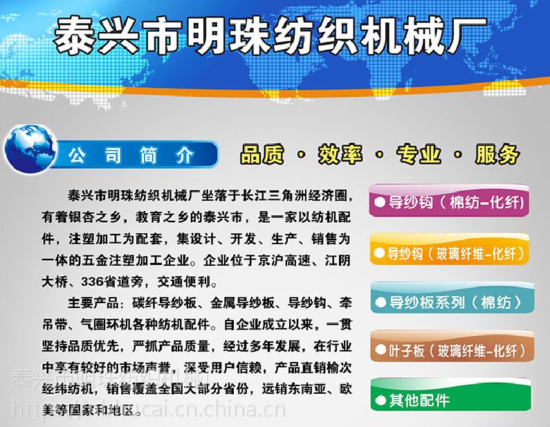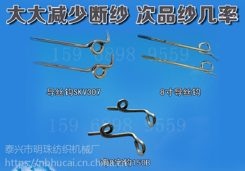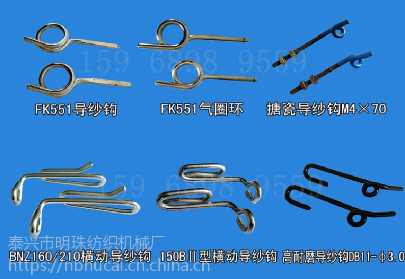 乌市高耐磨导纱钩、克拉玛依市碳纤导纱板、叶鲁番市金属导纱板、哈密市搪瓷导纱钩、阿克苏市氧化铝导纱钩、喀什牵吊带、和田罗拉皮圈、昌吉九字钩、博尔塔拉气圈环机各种纺机配件、巴音郭楞叶子板、克孜勒导纱板、伊犁导纱钩、德州搪瓷导纱钩、聊城氧化铝导纱钩、临忻九字钩、菏泽导纱钩、莱芜导丝钩。邹城导纱钩、