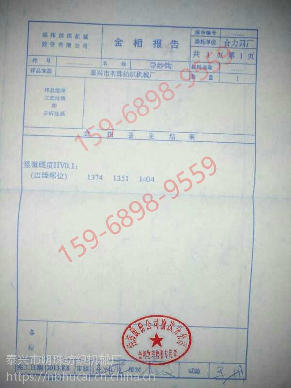 我厂自成立以来,厂长即投入全部身心研发超高耐磨导纱钩,经过多年的实验与实踐,技术的沉淀。终于研制出硬度达1400度超高耐磨导纱钩,网纱品质在原有品质上进一步的提升而达到欧洲和日本的特定国际标准,也一举成为经纬纺机原装超高耐磨导纱钩的供应商。