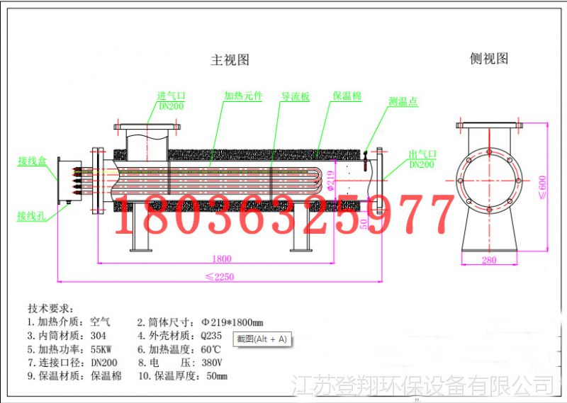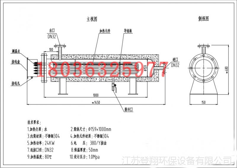 根据不同的加热介质,内筒可以选择不锈钢304,310,316l等,功率从3kw到1000kw不等,压力从1公斤到50公斤,不同的工矿,设计方式也不同,欢迎来电或者旺旺交流!