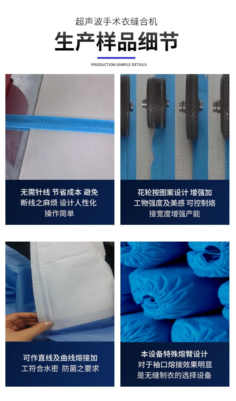 本机一机多用,更换模具可加工各种化纤材料。我公司可根据客户需求量身定制超声波系列医护防护系列自动化设备!