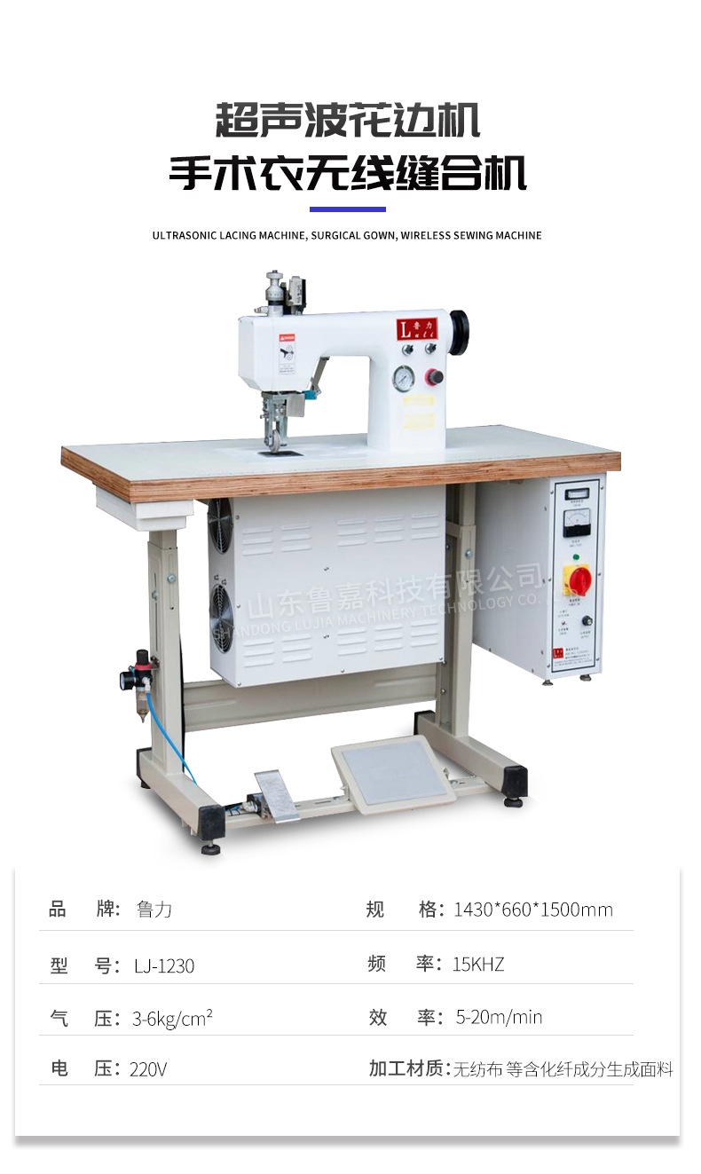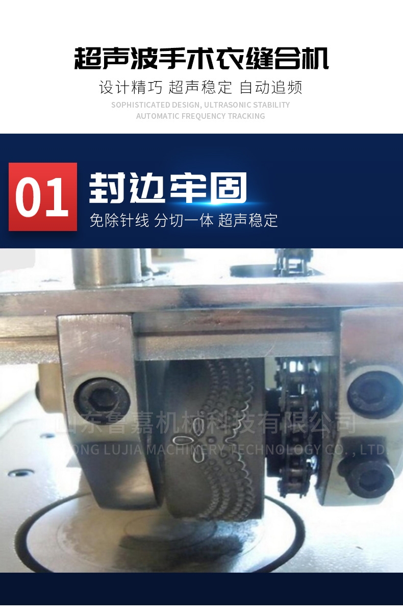 鲁力”牌超声波手术衣无线缝合机,别名“超声波手术衣机”,是鲁嘉机械公司熟练掌握布辅料再次加工生产工艺后, 利用超声波工艺,通过刀辊将手术