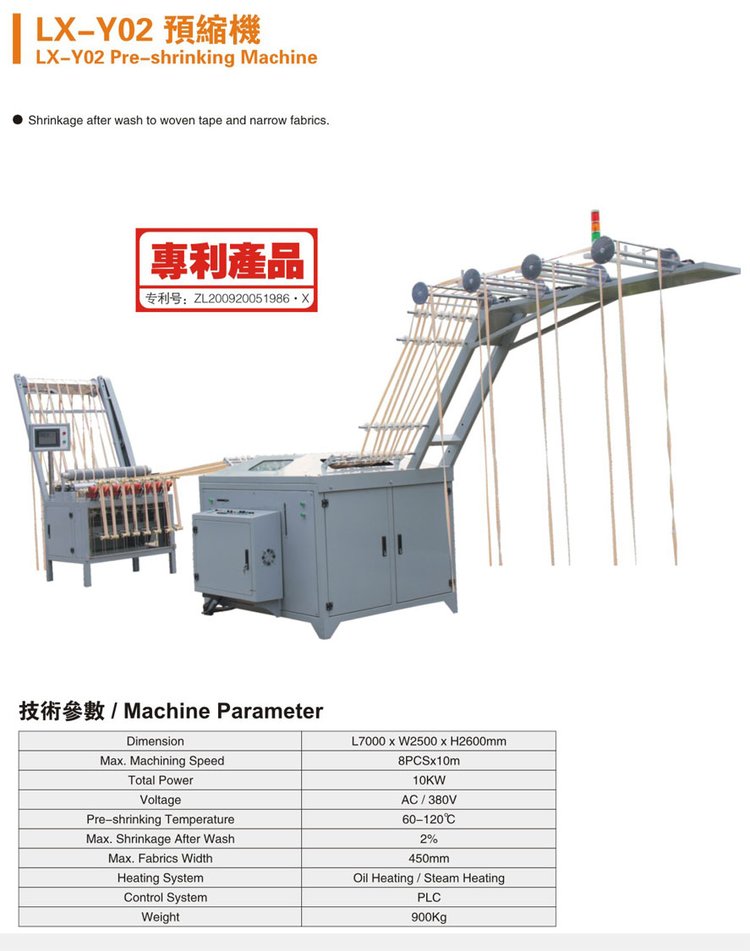 ???????? 本预缩机(又名整烫机)主要用于纯棉、涤棉、麻棉、混纺织物、各种编织带、弹力织带进行成品前预缩处理以及弯带整平等处理。