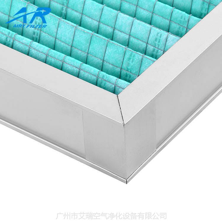 防护网:材质为镀锌网或铁线网,用以增强滤料褶层的强度,在使用过程中有效地减弱了滤料褶层的抖动,从而减少二次污染。