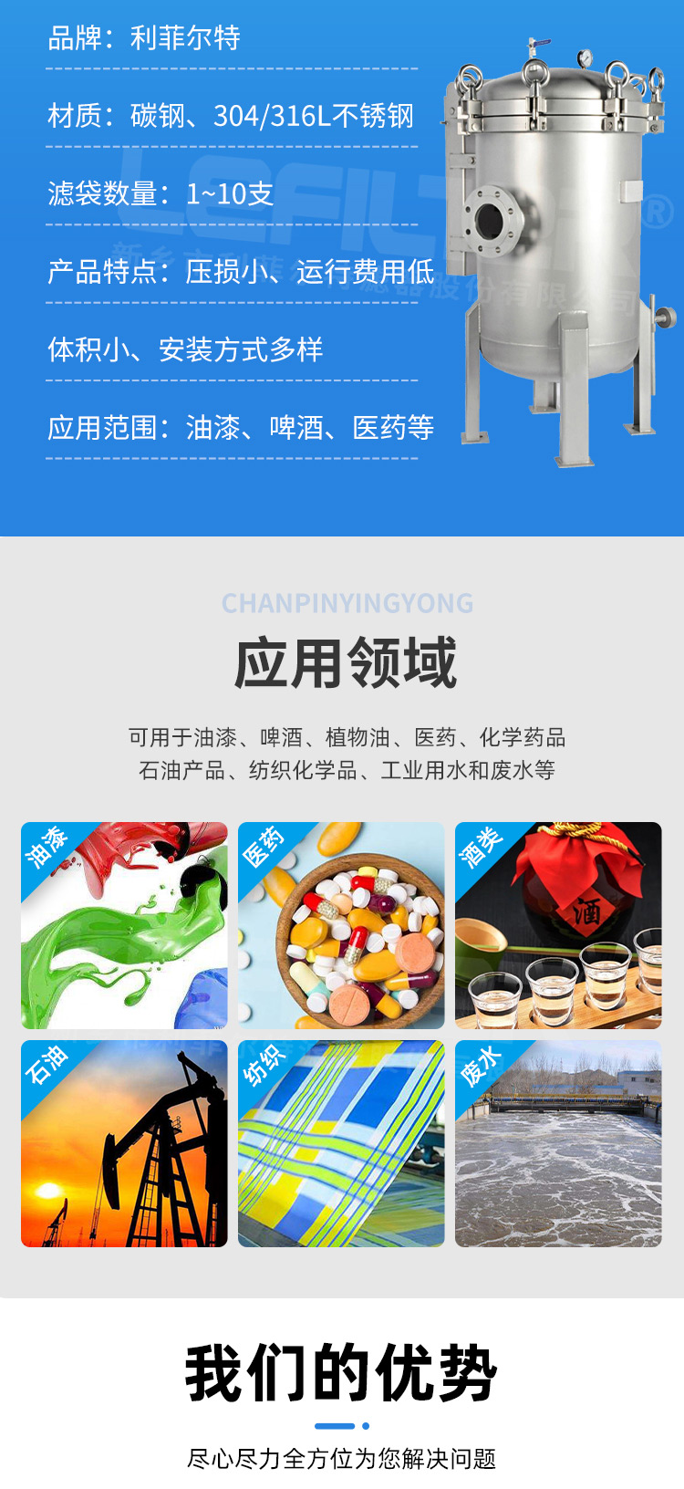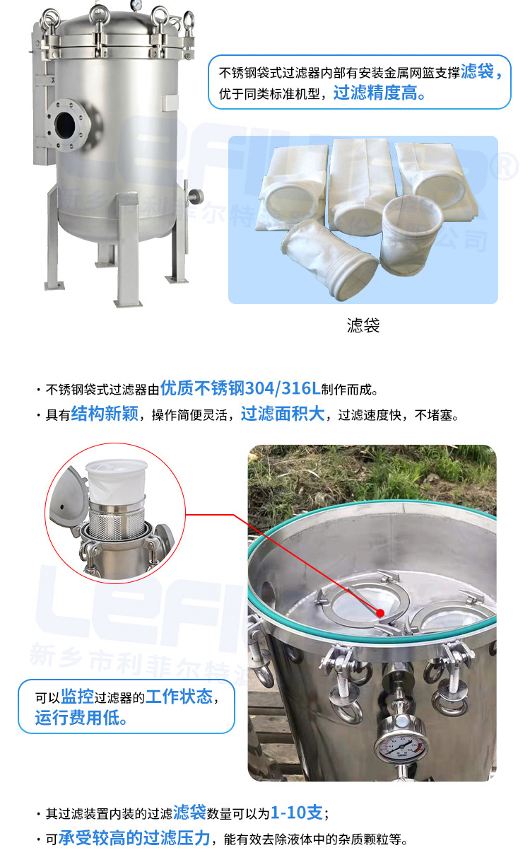 利菲尔特 不锈钢袋式过滤器 工业用水高精度拦截颗粒杂质 60t/h 是否支持加工定制 | 是 | ||