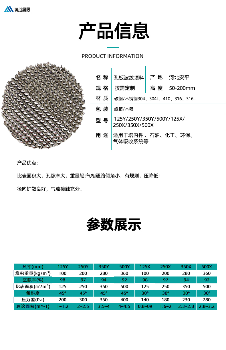 厂家定制高效125Y250Y350Y不锈钢304/316压延刺孔规整波纹填料 是否支持加工定制 | 是 | ||