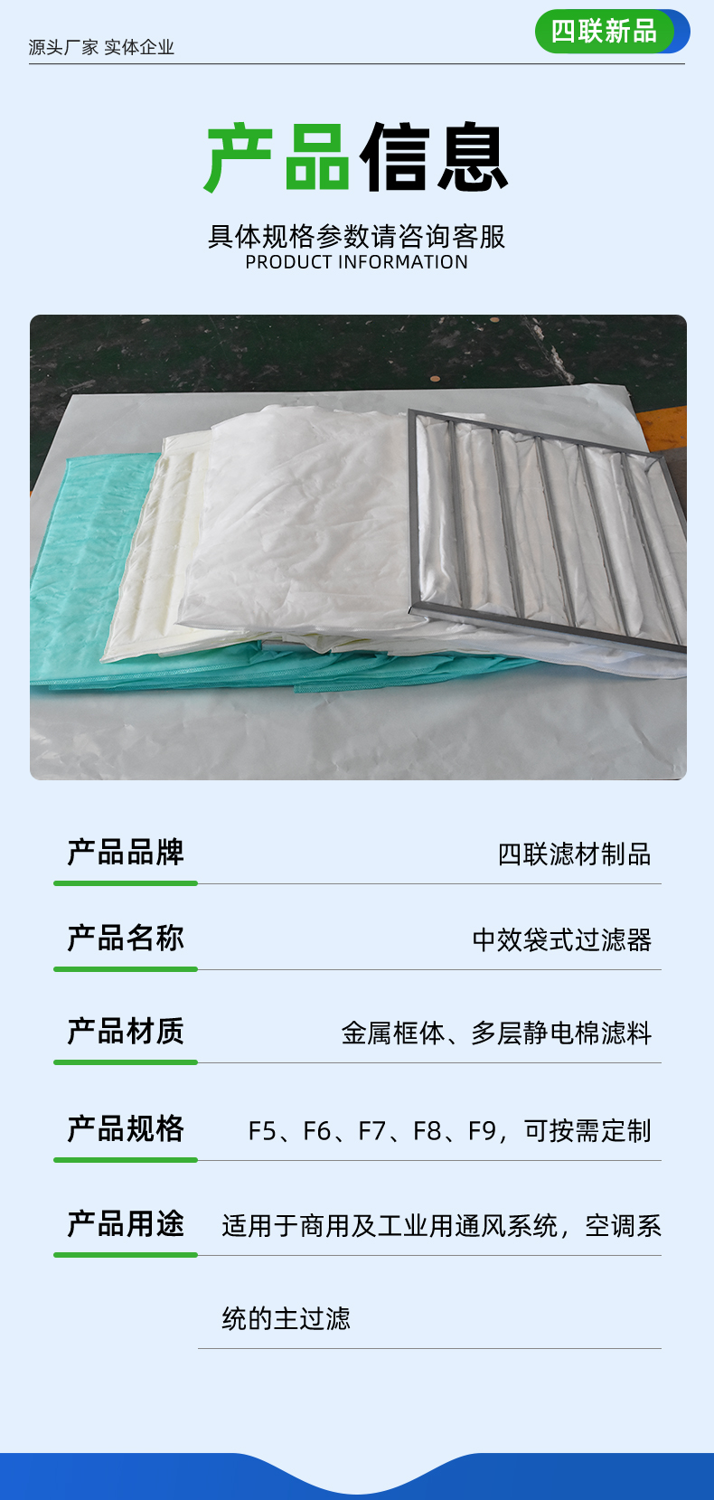 用途 | 空气过滤系统中较小颗粒的过滤 | ||