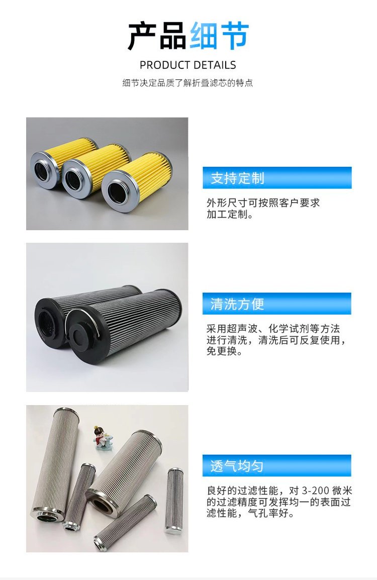 我厂滤芯可用于配套各种国内、国外相应的过滤产品,并可根据客户需求定制。客户可进行进口设备配件的国产化,降低客户的运营成本,提高经济效益。