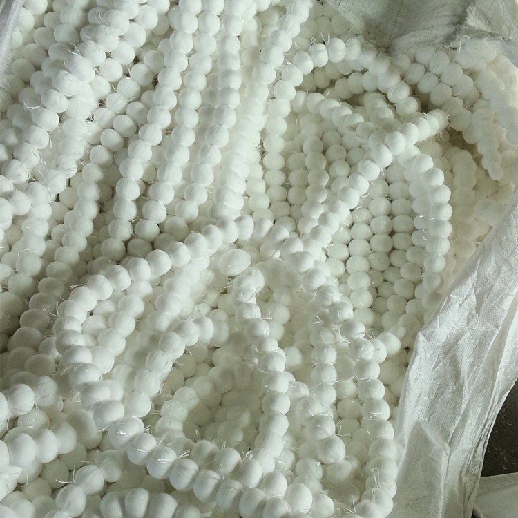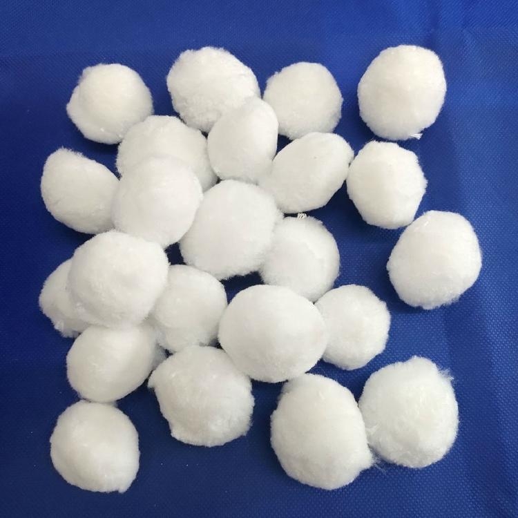 纤维球滤料是由涤纶、丙纶或者腈纶丝扎而成的球形滤料,具有弹性效果好,选用高醛化维呢纶,定型涤纶丝为原料,不上浮水面,空隙大,工作周期长,水头损失小等优点。
