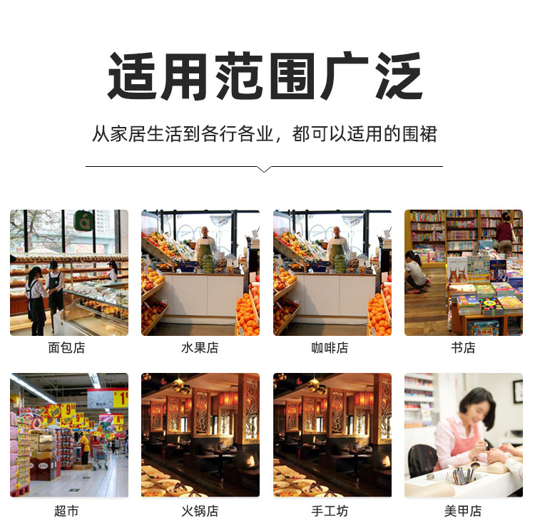 霆尊围裙厂是一家集设计、开发、生产、销售为一体的现代化制造工厂,已开发生产多种系列产品:有挂脖围裙、背带围裙、可调节围裙、韩版围裙、PVC围裙、牛津布围裙、桃皮绒围裙等广告围裙.可作企业宣传、产品促销、广告促销、礼品赠品之用,经久耐用,经济实惠,广告效果持久,物美价廉,方便实用,携带方便,即能做广告宣传品,又不失实用价值,是各单位企业促销产品宣传广告之首选。可以根据客户所在行业特点定制不同图案样式的广告袋,质量好,价格合理,可加印公司LOGO及彩色的广告图案,可单面彩印,热转印,烫印,烫金、烫银、丝印。 等各种促销礼品,工厂有优秀的人才队伍、先进的设备、完善的配套设施。 公司坚持“优质量,高信誉”的的经营理念,坚持“客户第一”的原则为广大客户提供优质的服务。欢迎惠顾!