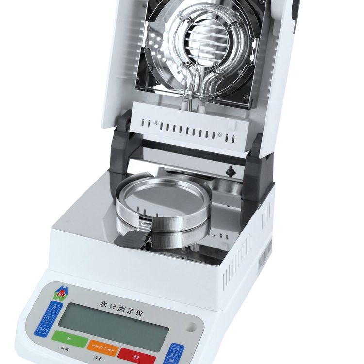 在测量样品重量的同时,仪器采用环形管卤素加热方式,快速干燥样品,在干燥过程中,水分仪持续测量并即时显示样品丢失的水分含量,干燥程序完成后,通过物质干燥后的质量和湿重的比获得水分百分比含量和其它结果。最终测定的水分含量值被锁定显示。