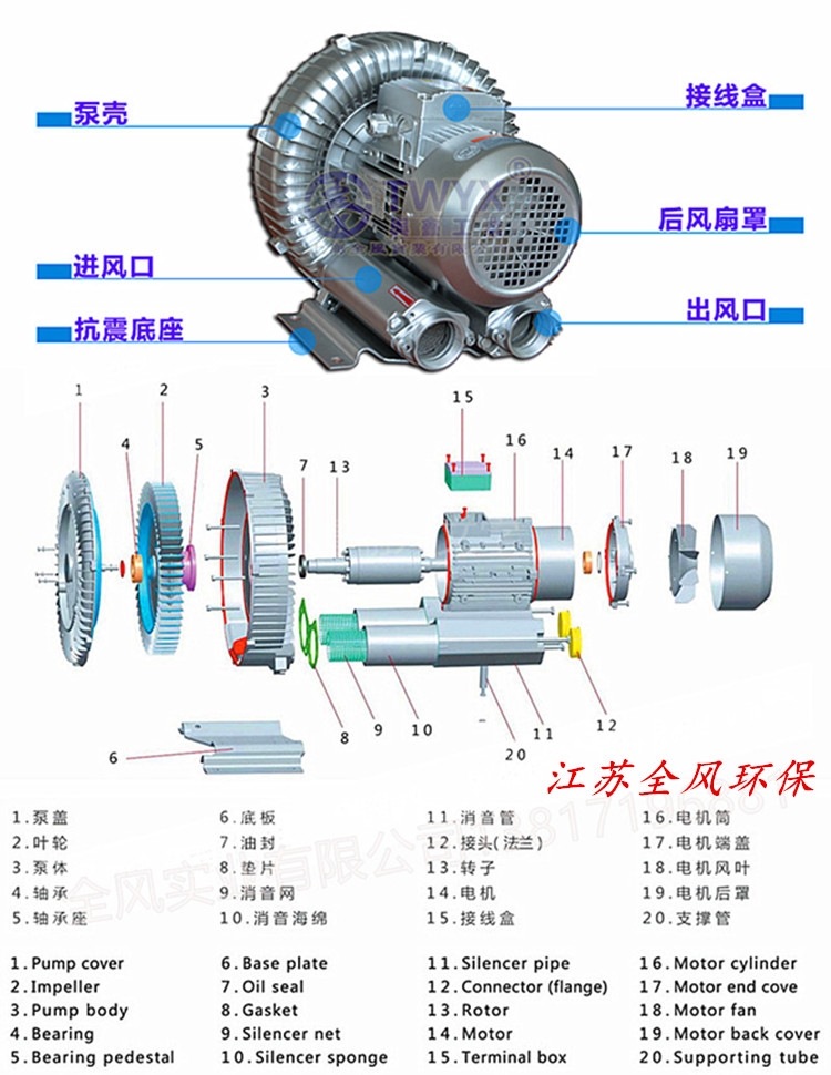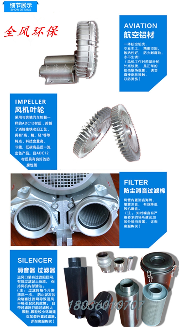 机械配套专用高压鼓风机 旋涡鼓风机 环形鼓风机 旋涡气泵小型易于携带;除了叶轮外,高压鼓风机没有其他动件,且叶轮直接连接马达,无齿轮或传动皮带带动,因此可靠性高,几乎免维修。